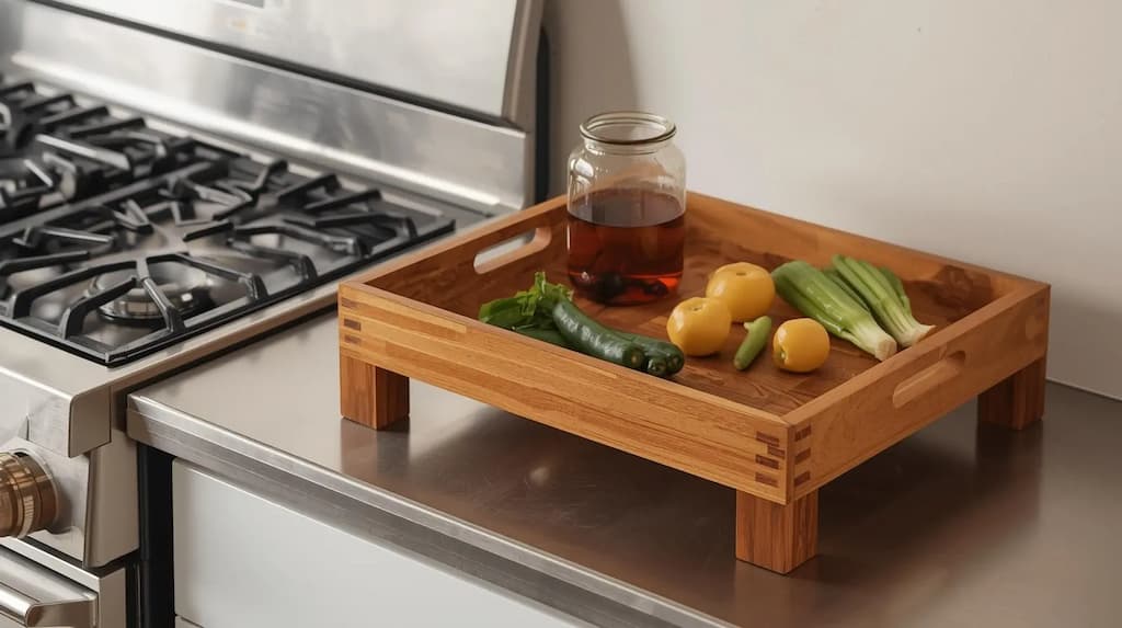 Keep your kitchen essentials neatly arranged with our beautifully crafted wooden organizer. Made from high-quality solid wood, this practical tray helps you maintain a tidy and efficient kitchen space.